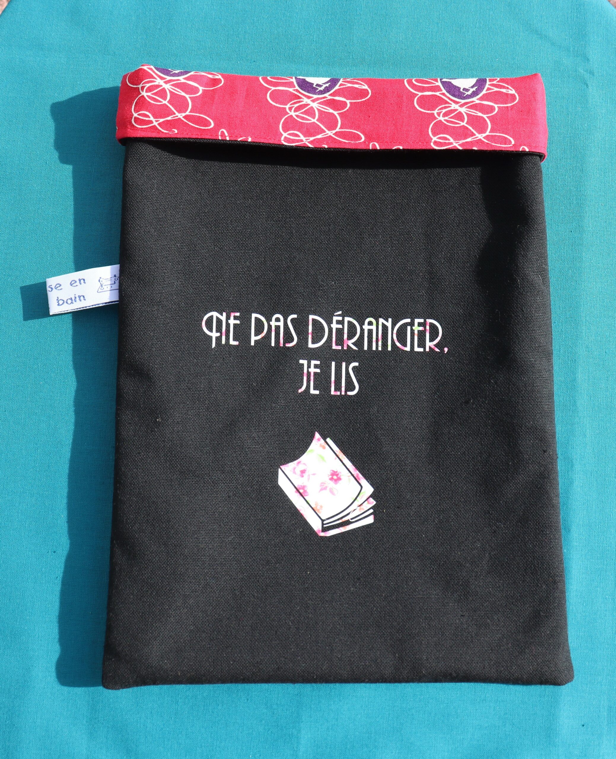 Cette pochette est personnalisée avec une inscription blanche fleurie » ne pas déranger, je lis ».